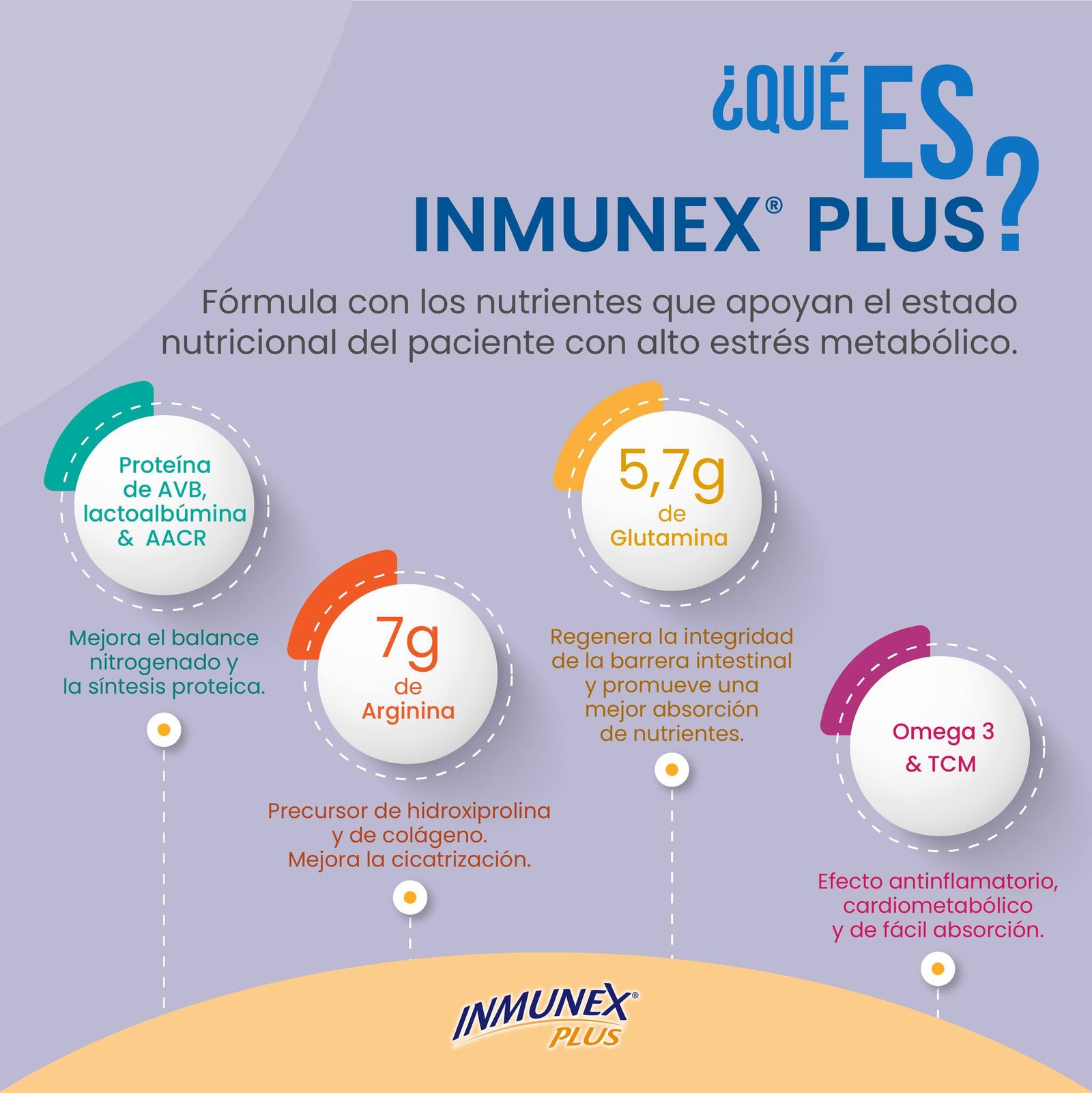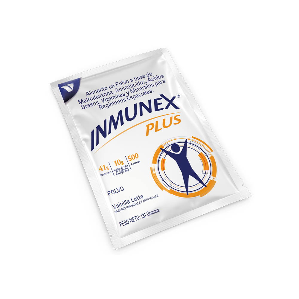 Administración: Puede ser administrado por vía oral y/o enteral por sonda. No puede ser administrado por vía parenteral. Colocar 410 ml de agua en una licuadora y añada un sobre de Inmunex Plus. Mezcle a velocidad media por 1 minuto.